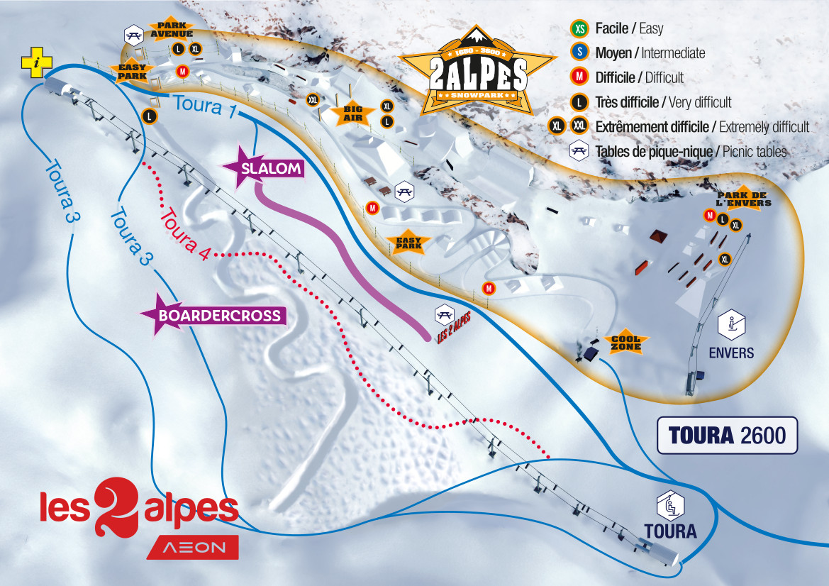 Les 2 Alpes oferuje narciarzom i snowboardzistom imponujący teren narciarski o łącznej długości 231 km. Najwyżej położone trasy rozpoczynają się na wysokości 3600 m n.p.m. Ośrodek ten zapewnia bardzo dobre warunki śniegowe i atmosferyczne do jazdy po nartostradach o zróżnicowanym poziomie – od łatwych, przez średniozaawansowane aż po naprawdę wymagające.