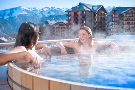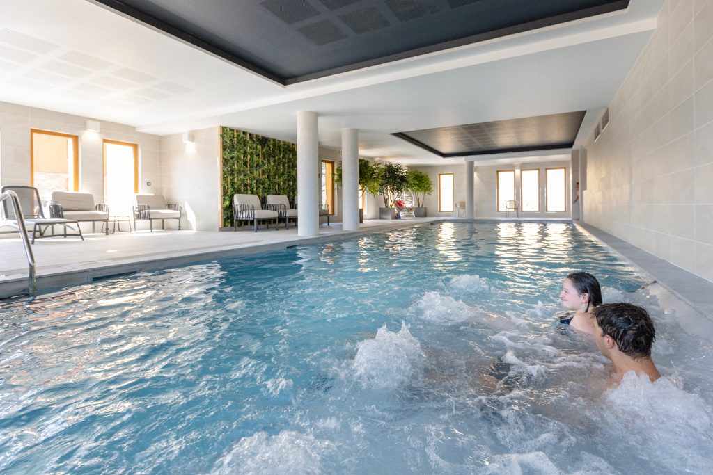 Dla miłośników relaksu i odnowy dostępne jest przestronne Espace Aquarelaxant – z podgrzewanym wewnętrznym basenem, sauną, hammam i nordyckim jacuzzi na zewnątrz z pięknym widokiem na dolinę. To idealne uzupełnienie narciarskich dni i moment na odprężenie mięśni po szusowaniu.